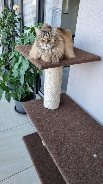 Die Stämme dieses Kratzbaumes bestehen aus imprägniertem Vollholz, umwickelt mit einem PP-Seil.