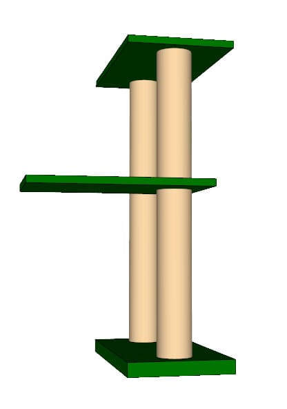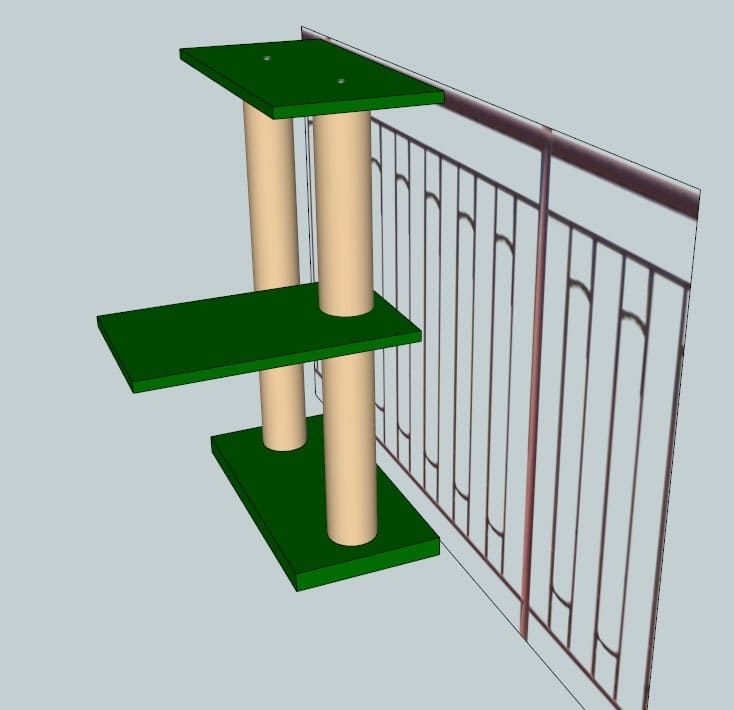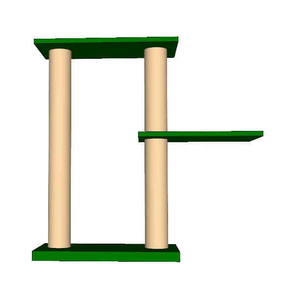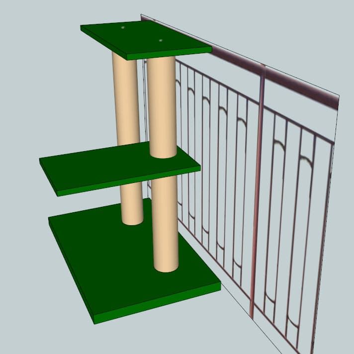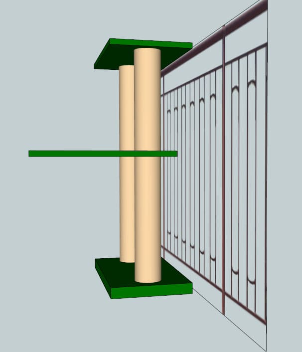 Als Nischenkratzbaum für draußen ist Flori mit nur 30 cm Tiefe besonders flach ausgeführt. Wenn Sie die Treppe nach vorne ausrichten wollen (siehe weitere Produktbilder), kann es sich anbieten, eine tiefere Bodenplatte (80 x 50 cm) zu verwenden. Die Löcher für die Stämme werden deshalb trotzdem so gesetzt, dass die obere Liegefläche und die Bodenplatte hinten gleich abschließen es sei denn, Sie entscheiden sich für eine zentrierte Anordnung.